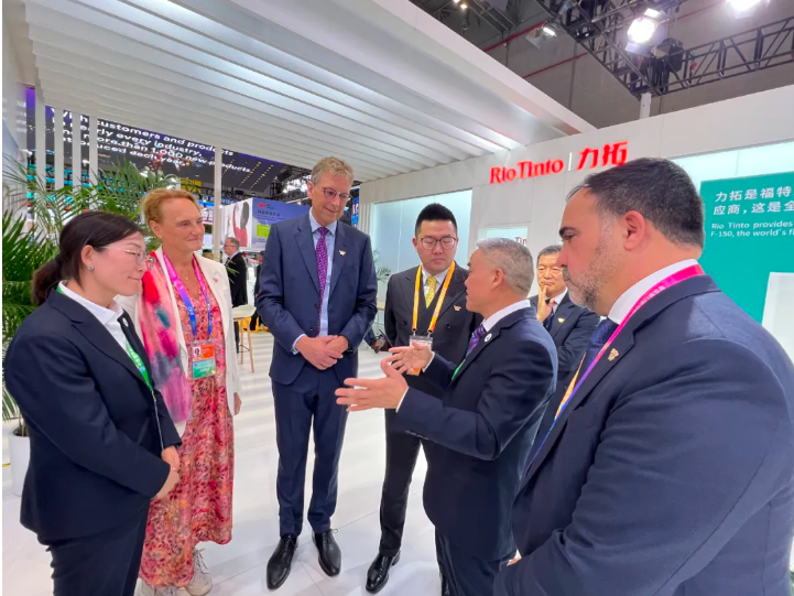 近日,第六届中国国际进口博览会正式召开,J9九游会科技董事长包志方带队参观并与力拓集团首席执行官石道成(Jakob Stausholm)、首席商务官兼中国区主席白睿明(Alf Barrios)亲切交流。
