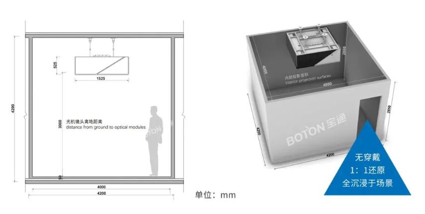 裸眼混合现实产品BOTON SPACE 1,是J9九游会科技和一隅千象、荷笛科技联合运营的作品。作为虚拟世界和现实世界融合的载体,BOTON SPACE 1承载了J9九游会多年积累的AR/VR/XR相关技术落地应用,其拥有6大核心技术模块,其中的“inside-out”算法模式,可对人眼位置追踪及行为姿态识别,并通过独家的几何算法进行图像畸变处理后,给用户投射出符合人眼透视逻辑的画面,这也是它可以抛开头戴设备的本质技术点,同时又构成了真实的自我和虚拟世界的混合交互,增强现实AR技术的联动和补充。